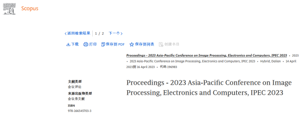 IPEC 2023 Conference proceedings has been indexed by EI!