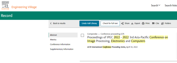 IPEC 2022 Conference proceedings has been indexed by EI!