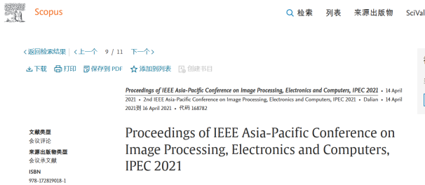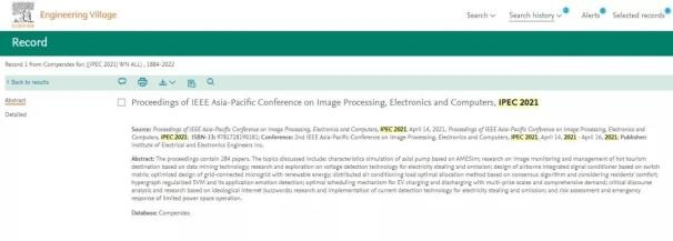 IPEC 2021 Conference proceedings has been indexed by EI!