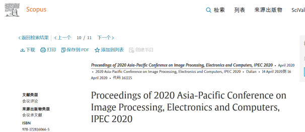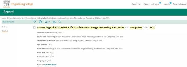 IPEC 2020 Conference proceedings has been indexed by EI!